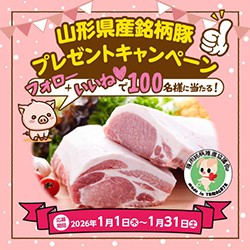 山形県産豚肉銘柄推進協議会では、山形県の美味しい銘柄豚を味わっていただくため、県産銘柄豚プレゼントキャンペーンを実施します!