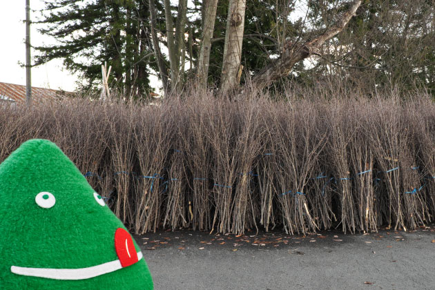 啓翁桜の栽培は春のカイガラ虫類の防除に始まり、肥料を施したり、枝の環状はく皮、園地の草刈り、追肥など、枝を切り出す秋までの間にも次々と作業が。組合長の金子さんは「西川町は高冷地で秋の訪れが早いため、啓翁桜はその分早く休眠に入って、早く目覚めさせることができる」と話してくれたペロ。